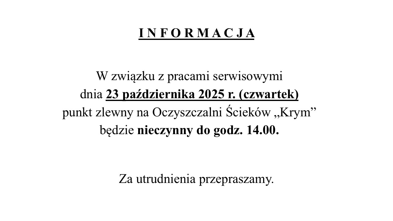 Nieczynny Punkt Zlewny - 23.10.2025 do godz. 14.00